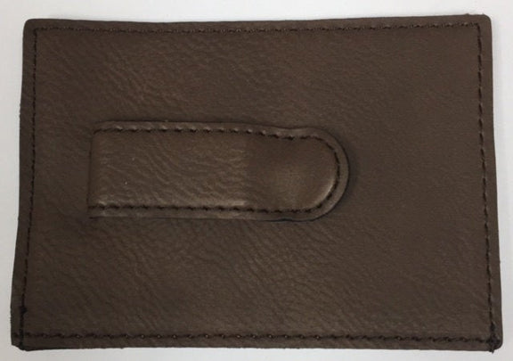 Brown leather money clip and card holder will hold several bills & cards.