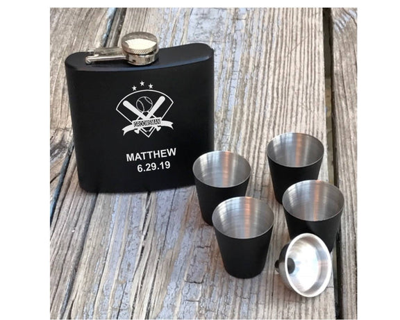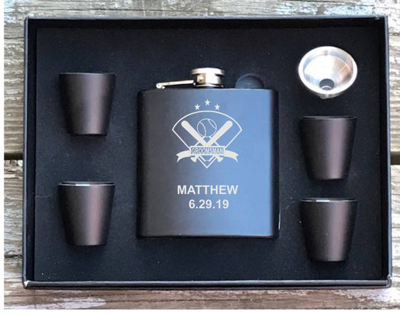 Baseball Inspired 6 Piece Flask Set With Gift Box Groomsman Best Man Gift