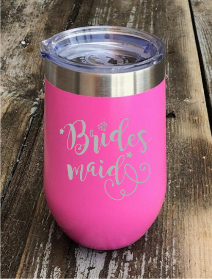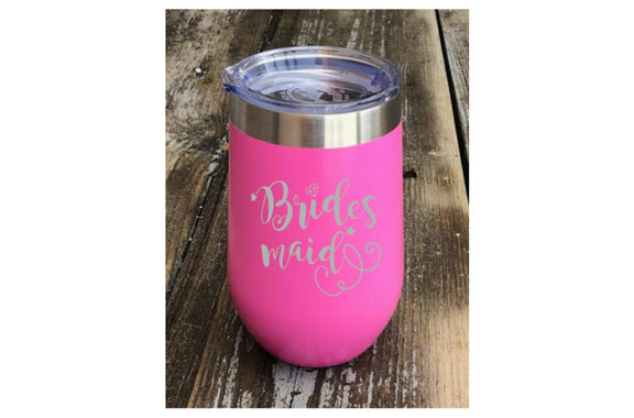 Bridesmaid, Maid of Honor, Bride Pink Stainless Steel Insulated 16 oz. Stemless Wine Tumbler