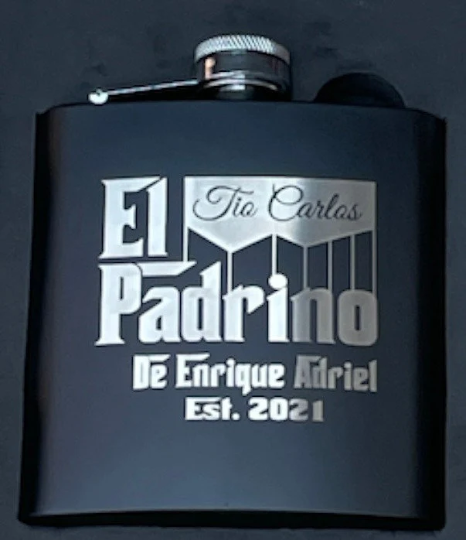 Deluxe El Padrino 6 Piece Flask Set Includes Wood Box Personalized Godfather Gift