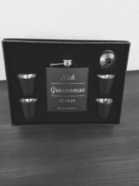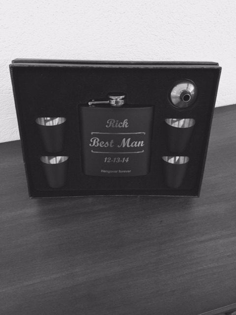Flask Personalized Black Stainless Steel Best Man Groomsman Gift