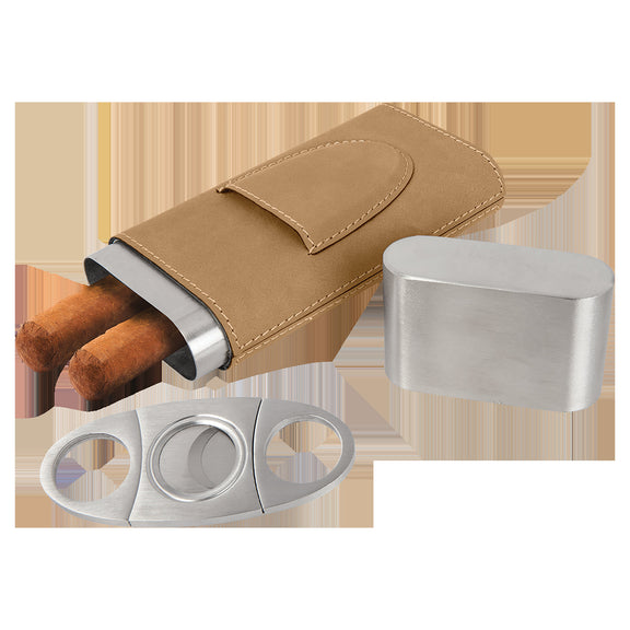 Laserable Leatherette offers the look and feel of genuine leather at a fraction of the price. This richly textured, synthetic material is water resistant, easy to clean and durable enough for the rigors of daily use. The high quality workmanship of each leatherette piece is sure to impress every recipient with its elegant individuality. The case holds 2 to 4 cigars depending on size.
