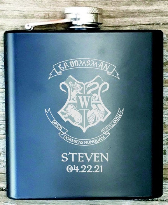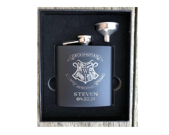 Wizard Flask Set, Engraved Flask & Funnel Gift Set, Wizard Inspired Groomsman Gift