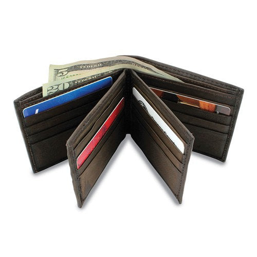 Durable Genuine Soft Leather, 2 Inside Inserts for Paper Currency, 16 Credit/Debit Card Slots, 2 Clear Center ID Slots, 5 page wallet picture sleeve. Genuine Leather Engraves Beautifully.