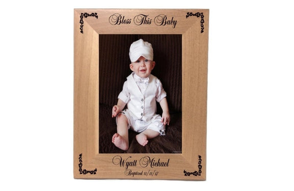 Personalized Baby Photo Frame, Holds 5" x 7" Photo, Bless This Baby Wood Frame, Engraved Free