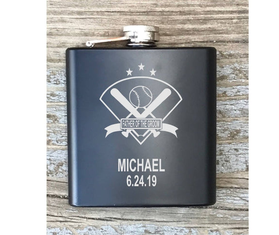 Personalized Baseball Inspired Father Of The Groom Flask Engraved Bachelor Party Gift Groomsmen