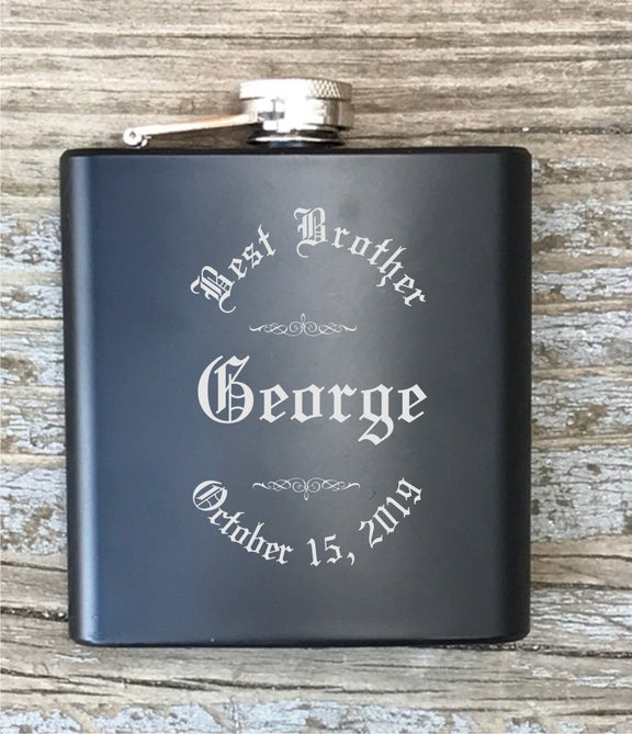 Personalized Best Brother Flask Old English Circle Engraved Bachelor Party Gift Groomsmen
