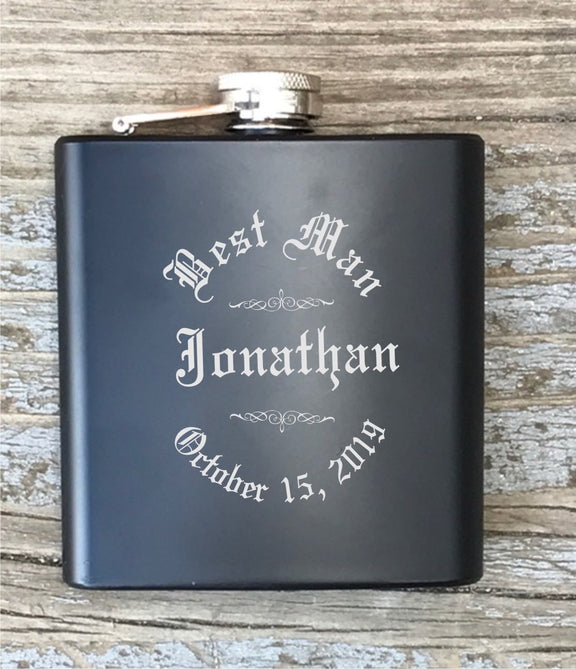 Personalized Best Man Flask Old English Circle Engraved Bachelor Party Gift Groomsmen