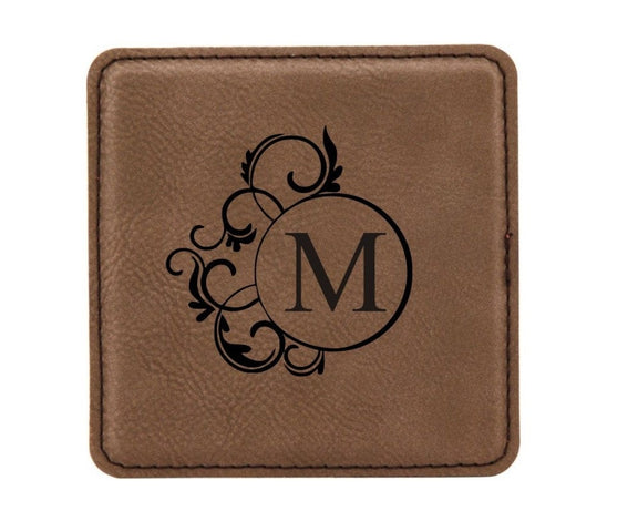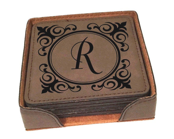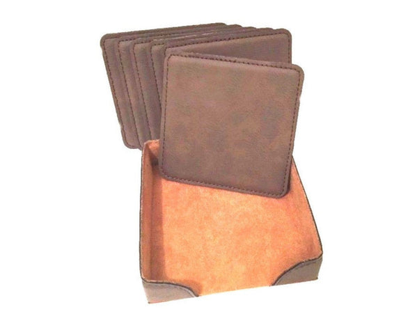 Personalized Coaster Set of 6 Leather includes Holder Engraved Free