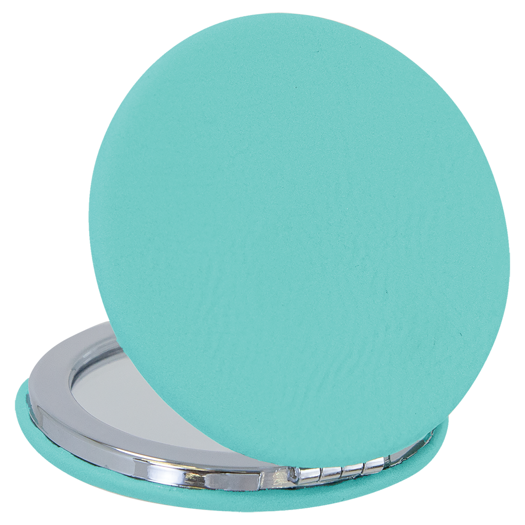 2 1/2" in diameter and 5/8" thickness Laserable Leatherette Compact Mirror