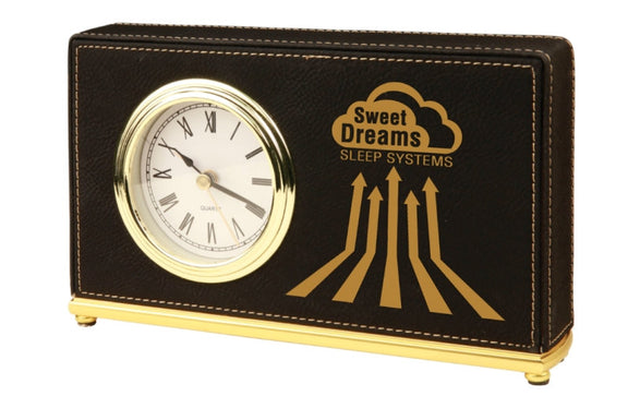 Personalized Desk Clock Black Leather Soft Finish Custom Engraved