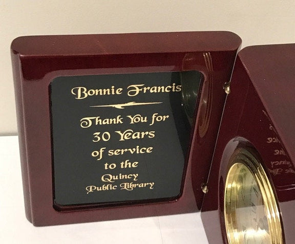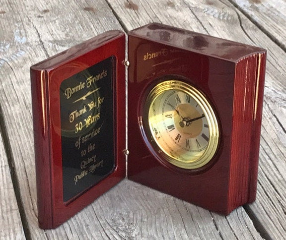 Personalized Desk Clock Book Clock Plaque Solid Piano Finish Rosewood Engraved