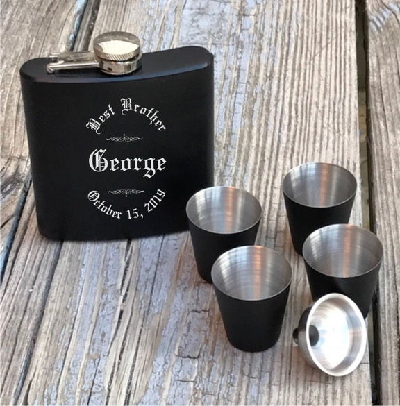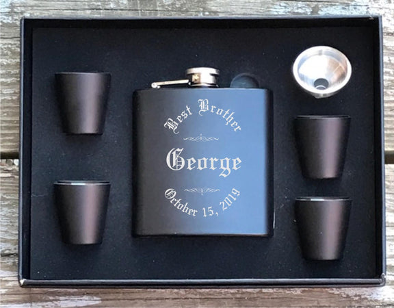 Personalized Flask Gift Set Best Brother Engraved Wedding Engraved Black