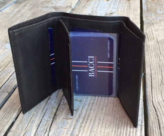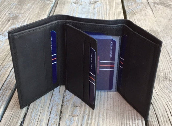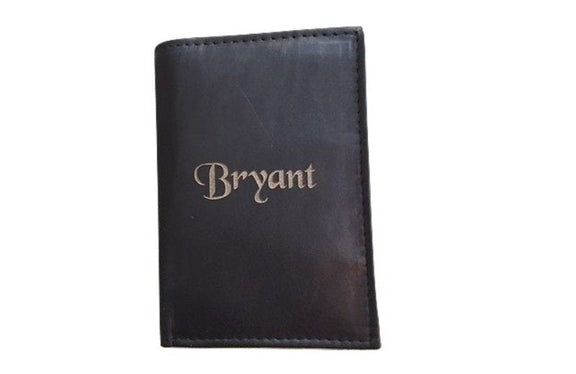 Genuine leather and plenty of card slots are features of this personalized black tri-fold wallet that will please the men in your life. Add to that a personalized message on the front and the result is a thoughtful and memorable gift. Everything he needs to bring along essentials each day. Come up with a sentimental message for the groom, tell a brother that he is your buddy, or give a lasting sign of your love to Dad to carry close. Engrave a message on the back to make this gift even more personal.
