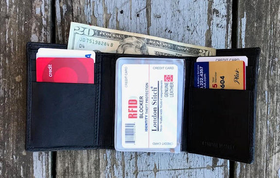 New Deluxe Black Leather Trifold Wallet With RFID Blocking