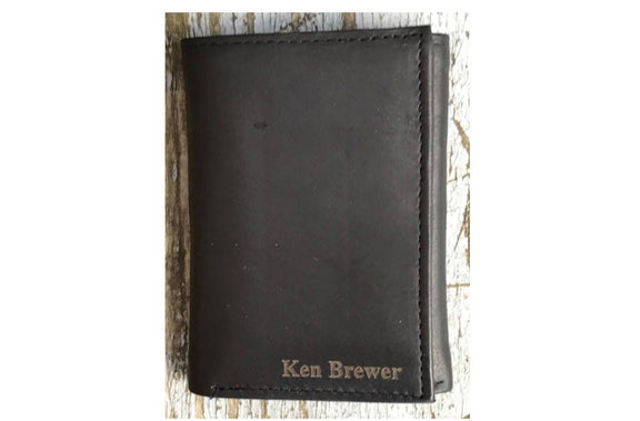 **PLEASE NOTE - Wallet is genuine leather and the grain of the leather is different on each wallet so it is not possible to guarantee that each wallet will look exactly the same when engraved. We have included a couple of pictures above that show some of the different looks after the wallet is engraved.