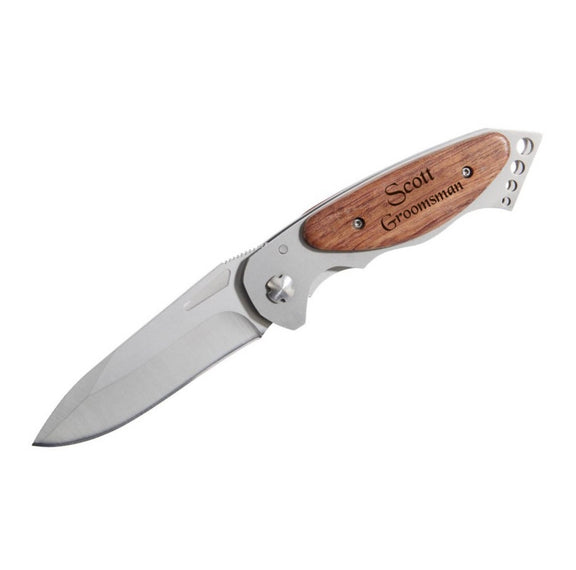 Personalized Stainless Steel Lock Back Pocket Knife Wood Handle Groomsman Best Man