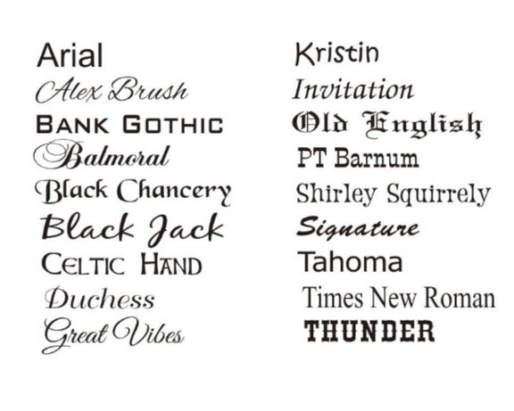 Font Style: Block or Script (Font Styles Shown In Picture Area Above)