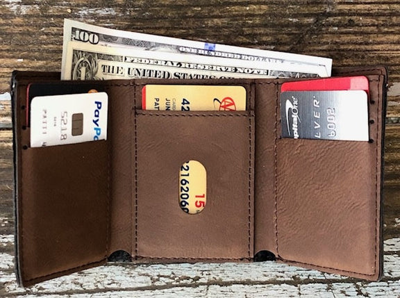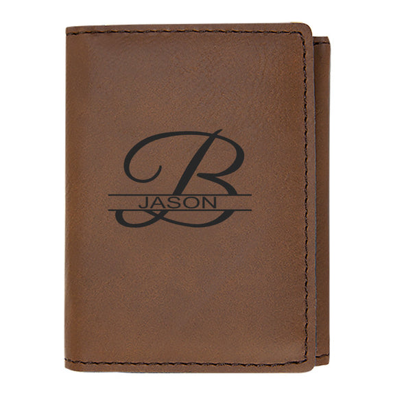 Personalized Tri-fold Wallet Dark Brown Engraved Groomsman Best Man Gift