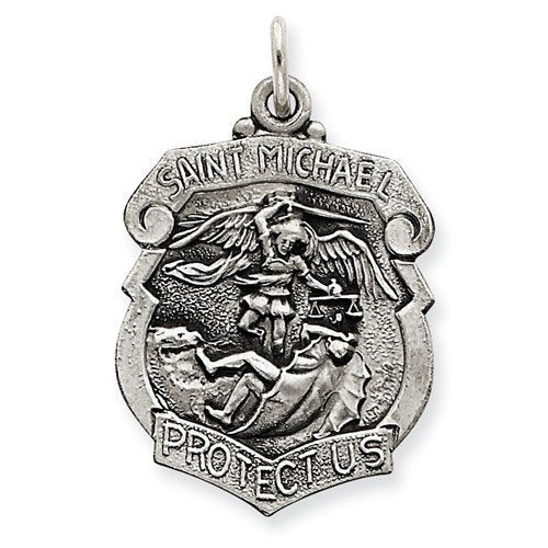 St. Michael Police Badge Shaped Medal Sterling Silver Patron Saint Personalized Necklace Engraved Free With Box